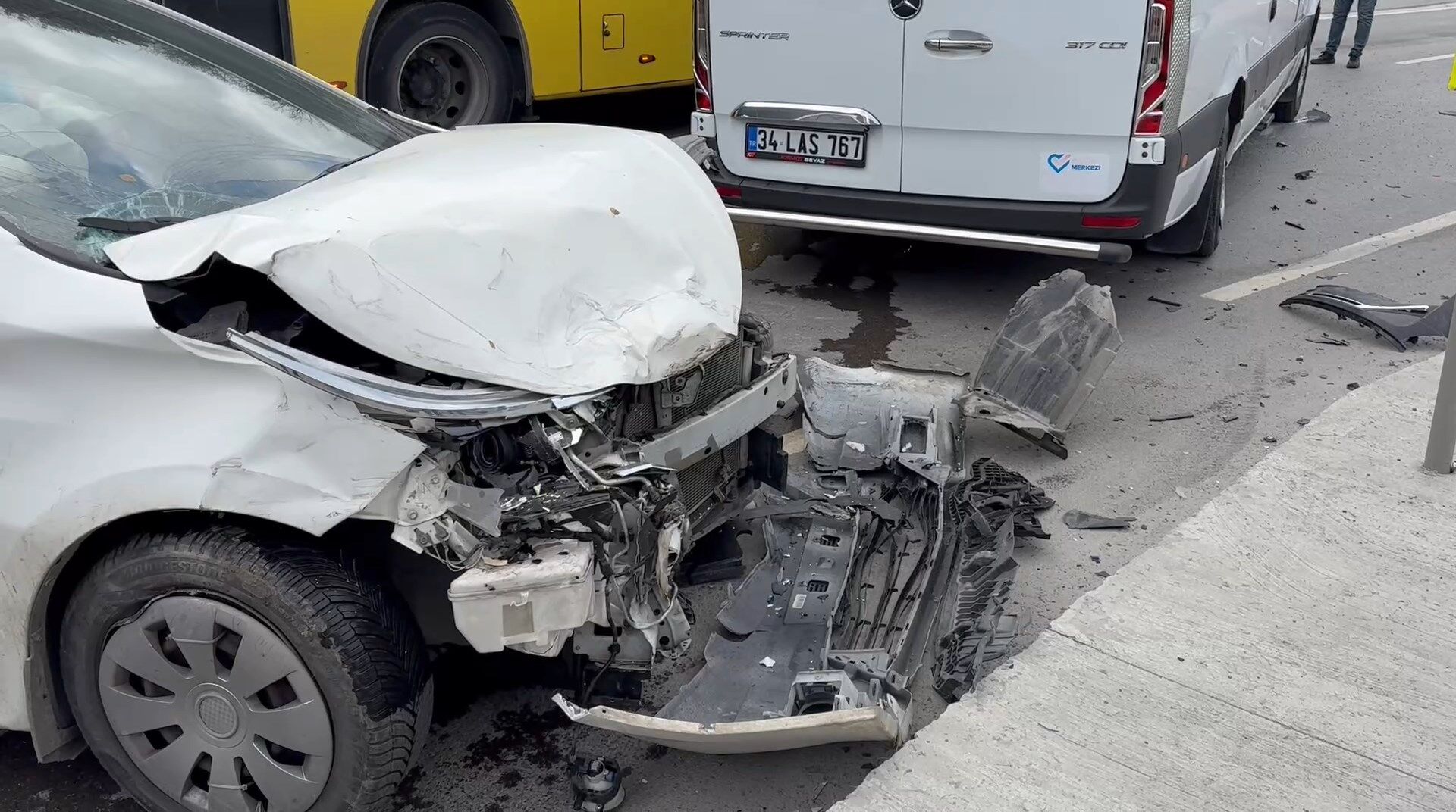 İstanbul Sarıyer’de virajı alamayan sürücü Ece Naz Yazgan’ın (18) kullandığı cip, refüjü aşarak karşı yönden gelen Melek Yelbay’ın (23) kullandığı araca çarptı. Araçlar Demirkan Demir’in (21) kullandığı otomobil ve İbrahim Gözegü’nün (55) servis aracına çarparak durabildi.